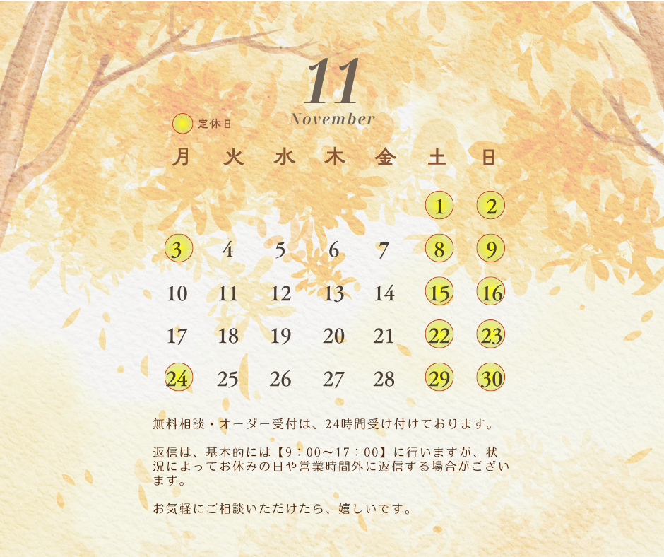 【お知らせ】11月の休営業日と制作状況