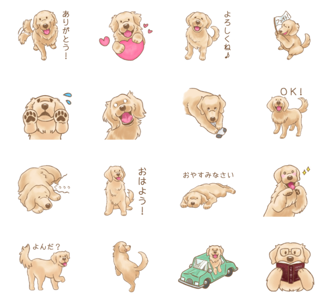 使いやすく優しい色合いのゴールデンレトリバースタンプです。